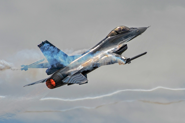 Really key to a good result is having some idea of what is coming up so keep an event programme to hand. After a few airshows, photographers will start to become familiar with the aircraft movements and will have a good idea of what they want from the picture. ‘Turn and burn’ shots are always popular where a fast jet executes a steep turn with the afterburners on pointing back to the camera.