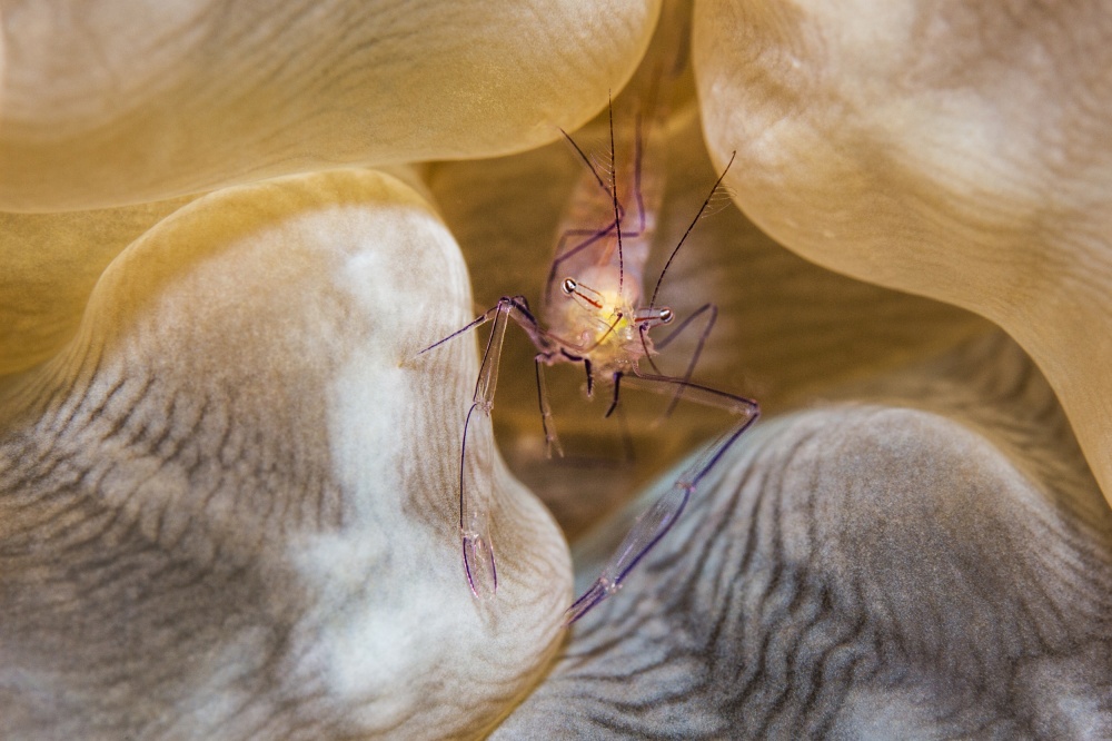 The bubble coral shrimp has a symbiotic relationship with bubble coral, so it always appears on a good background, making it one of the most pleasant and intriguing underwater macro subjects to photograph.