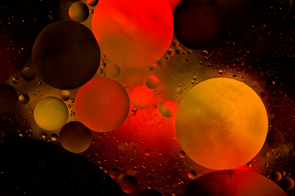 "I wanted to get both large and small shapes for an interesting composition, and I was able to produce many different sizes of oil circles by swirling the mixture with my finger."